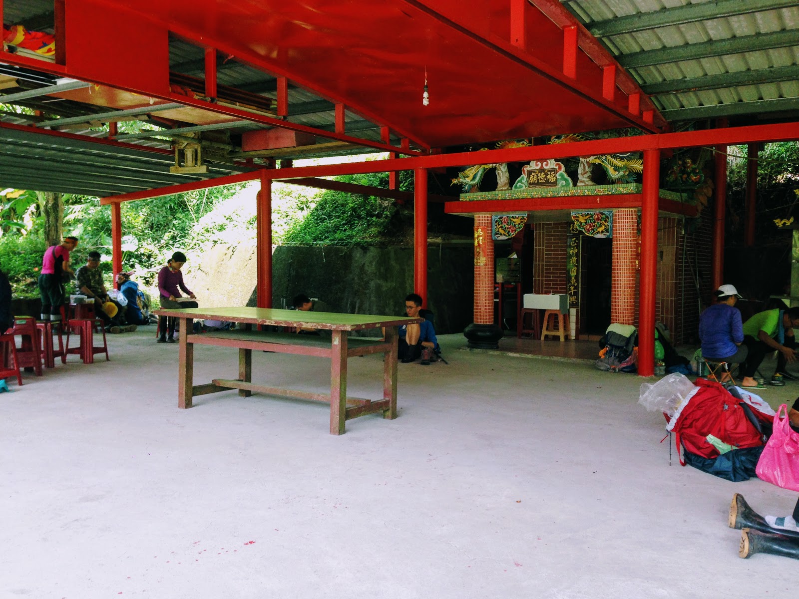 一路走來每個現存聚落和曾經存在的聚落都有一座小土地公廟。Tony曾經說過,有沒有土地公廟,是判斷是否為古道的依據。像大屯溪古道因為沒有土地公廟,所以大概只能算是採筍道。我們在泰平國小吃午餐休息後,再度走到這個路口。大隊人馬又搜刮了一次冰箱。累計消費金額我估計至少有1800元,吃到缺貨隔壁工廠又派人出來補冰棒。