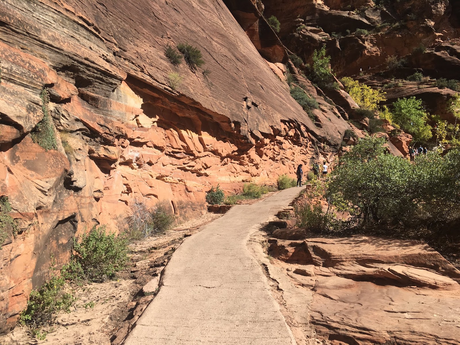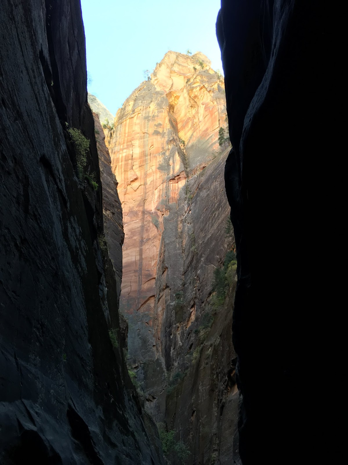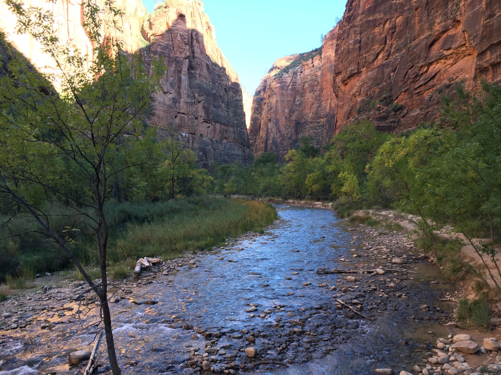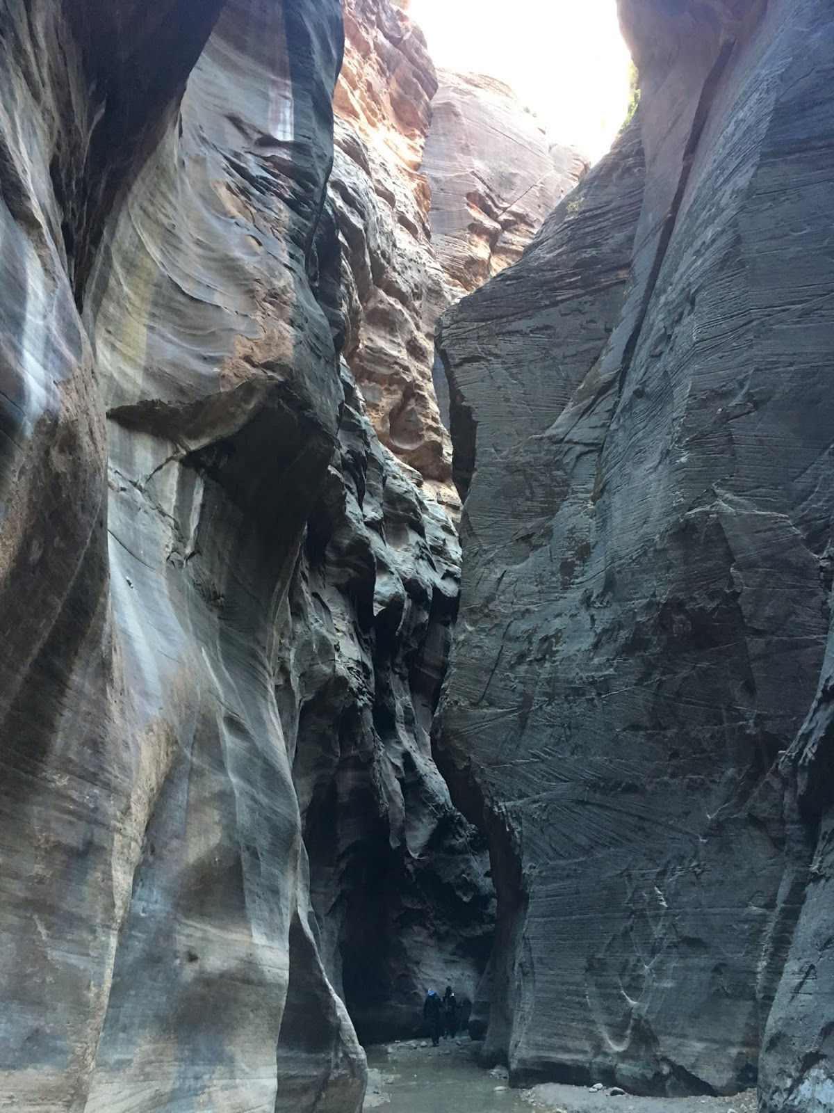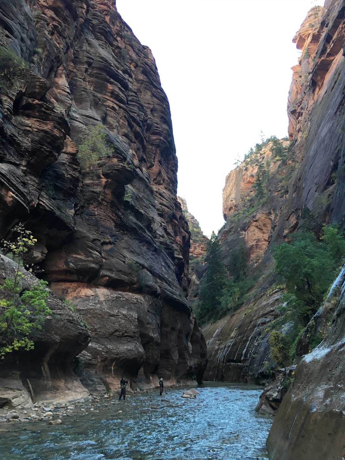 Zion最著名的景點之一, 路線中最窄的區域大約2公尺, 搭乘遊園公車來到最後一站, 沿著Riverside Walk走到水泥路的盡頭就可以開始涉水, 建議攜帶雙杖, 保暖鞋可有可無, 不過怕冷的話建議去租, 在接近折返點的地方水會開始變深, 需要稍微游泳的程度, 除此之外水深大致上都在膝蓋之下, 在沒有Fresh Flood警報的情況下可以在裡面安心玩水, 只是要注意不要泡水泡太久失溫, 畢竟峽谷內僅有少數區域可以讓陽光直接照射取暖