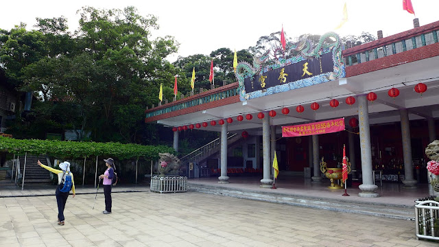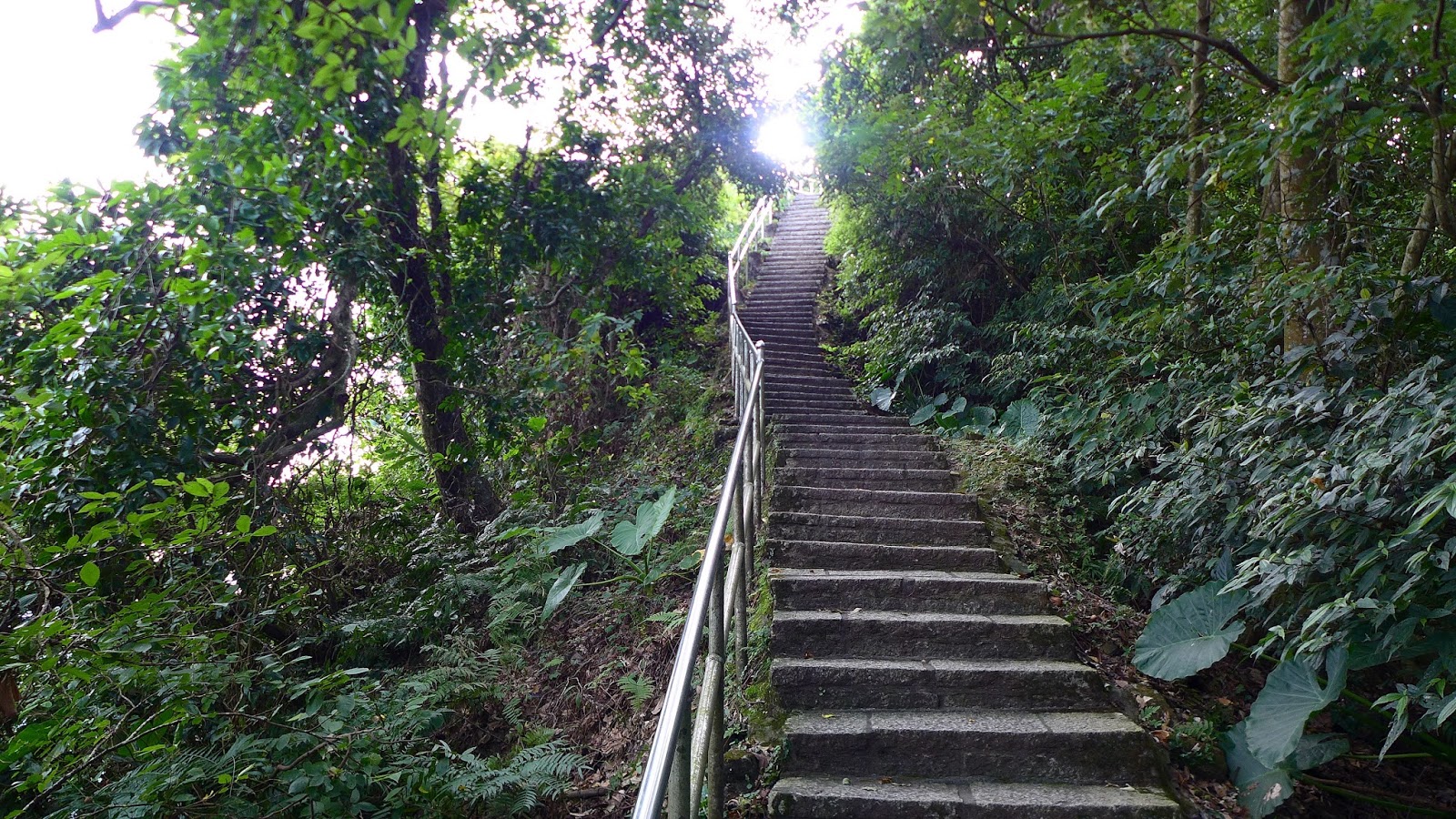 從汐止市區往大尖山看,錐形的山頭可知其名由來,登大尖山一般都從天秀宮開始走,這裡供奉的主神是關聖帝君,從這上到大尖山不長,0.7k而已,卻是一路陡上的石階,一早大家集合完,開始啟程。