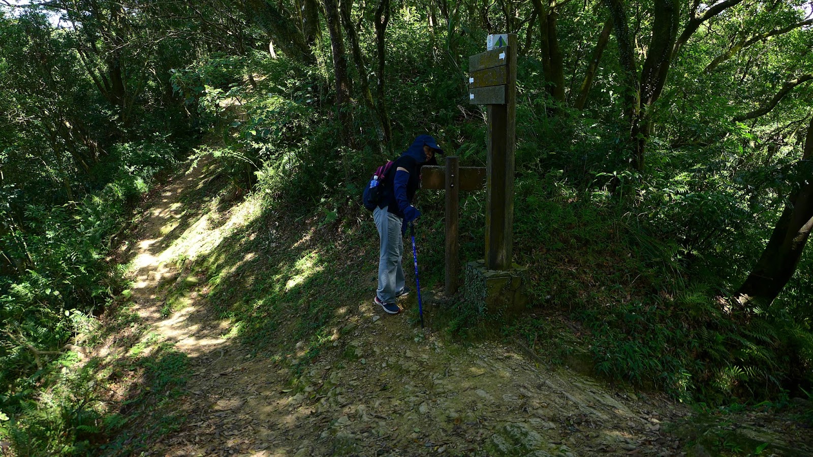 休息一會後,續步道往四分尾山2.2K,這邊到四分尾山多半在稜線上,沿途平緩涼爽好走,爬升不多,經過往清修天道院叉路可下秀峰瀑布,預定回程再走,經和尚頭山叉路也不取,續行,登四分尾山前左側有一叉路是茄苳古道可下茄苳瀑布,等會要走的路徑,先登四分尾山。