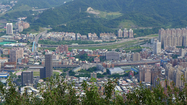 近看汐止市區,秀峰國小和更後方的汐止車站