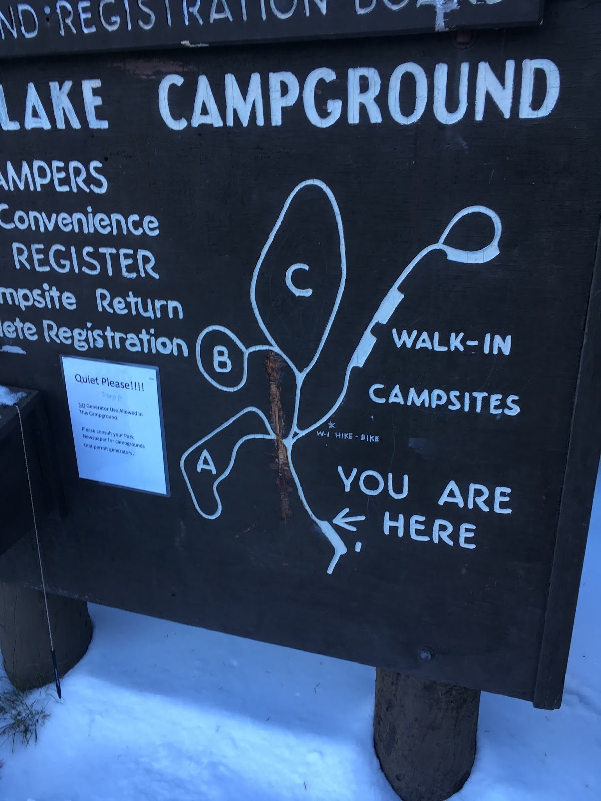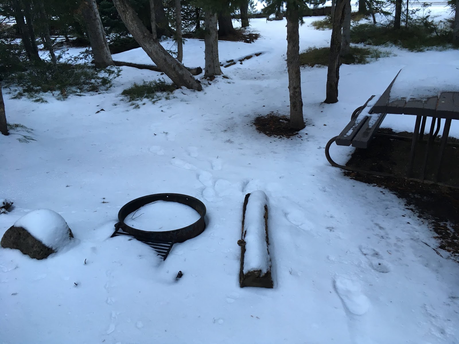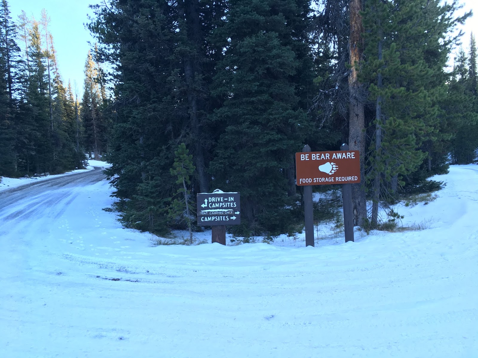再來介紹黃石公園內的營地, 這裡介紹的營地指的大部分都是汽車營地, 就是可以開進一般非露營車的車輛, 有的營地會設置停車場, 停妥之後再步行到露營區, 有的則是停好車之後就在旁邊直接紮營或是睡在車上, 營地的形式也有分成兩種, 先搶先贏的營地和預約型的營地, 先搶先贏的營地就是一早要到等著排隊, 已經入住的遊客可以在前一天決定要不要續住, 我在黃石這段期間住過靠南邊入口的Lewis Lake營地和靠北邊入口的Mammoth Hot Spring營地, 兩個都是先搶先贏的營地, 不太一樣的是Mammoth Hot Spring的營地有專人管理, 因為附近有地熱泉所以全年無休, 我是凌晨三四點就抵達入口開始排隊, 排隊的時候因為有開車所以就是用車佔位置, 等到天亮管理員開始上班的時候就看有多少空位開放多少車輛入場, 之後就自己去找空的營地, 佔好位置之後再跟管理員回報並填妥資料, Lewis Lake營地則是完全自助式的形式, 不太確定是不是因為設施關閉的關係所以入口的管理站才空無一人, 雖然相對位置是在南邊, 但是海拔較高所以我進去的時候有的營地滿滿的都是雪, 很辛苦的才找到可以搭帳篷土地, 一樣也是佔好位置後到入口處的自助付費站寫下自己要入住的時間, 並把錢裝入信封內投入郵筒(一晚15美金), 再把標籤綁在營地的固定樁上, 由於是自助式的所以就是看使用者誠不誠實了, 附帶一提就算不付錢也還是要去入口拿標籤綁在固定樁上, 因為Ranger還是會來巡察的, 只是我不知道她有沒有打開郵筒檢查是不是每個人都有付錢就是了......