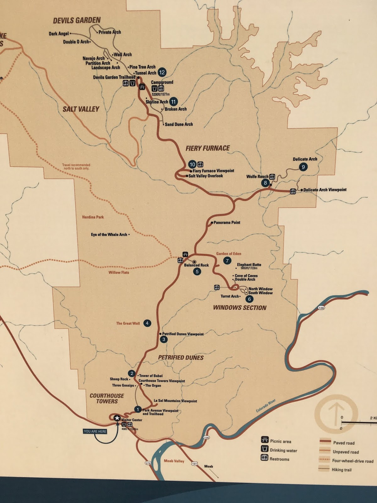 因為景色都蠻相似的所以記憶有點模糊, 只看照片很難分辨到底拍的是哪個拱門, 園區內大部分的拱門都是要下車走一小段路才能看到, 地質多是岩石帶一點細沙, 穿運動鞋的話在上下的地方要小心滑, 另外園區內很少看見鐵欄杆等人造設施, 也不會特別去規範哪邊能走哪邊步行走, 因為都是大岩石所以能夠爬上爬下的地方其實很多, 所以要注意自身安全, 不要急著爬過拱門而不小心從另一邊掉下去