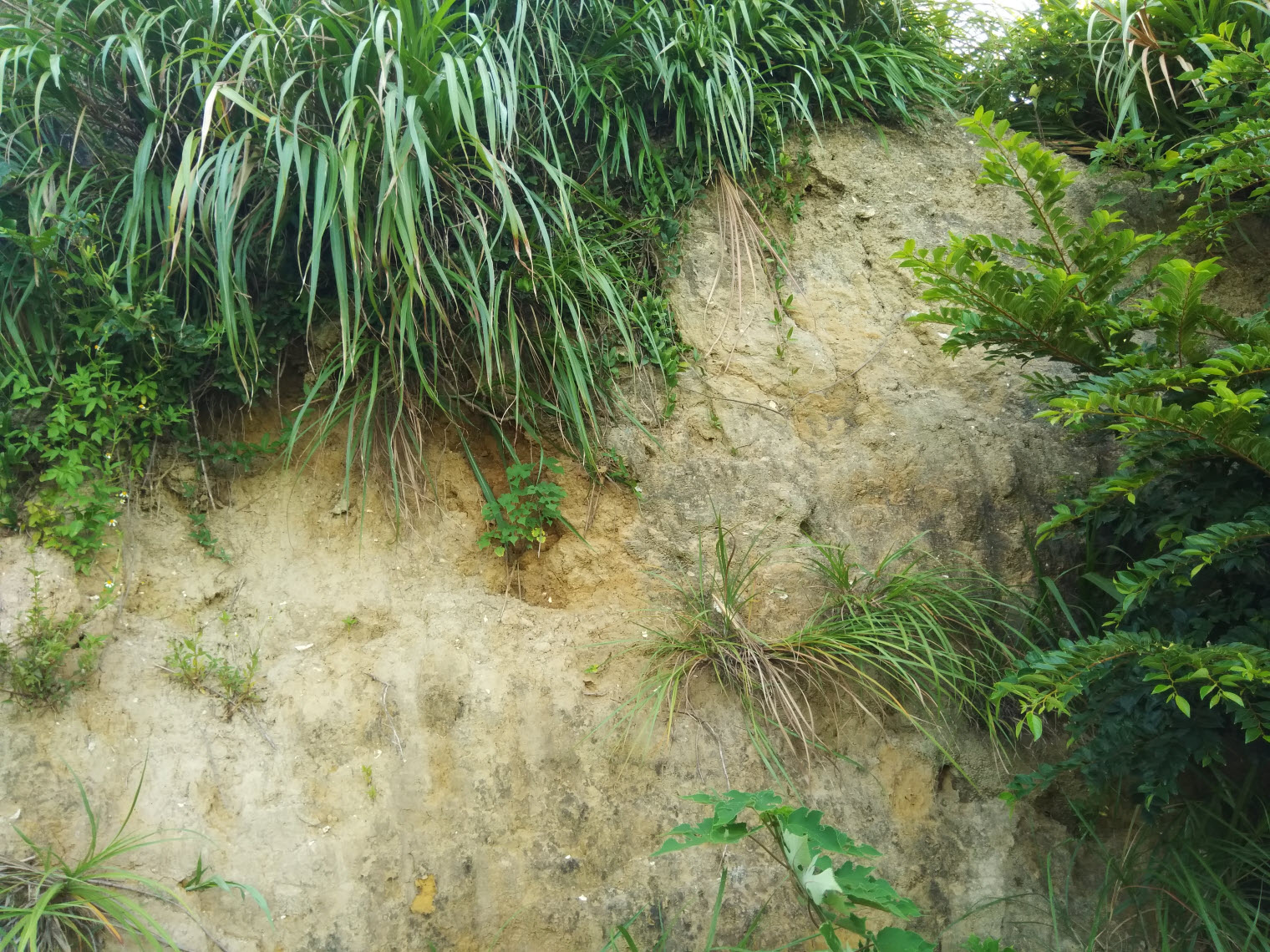 可以明顯地在土層上看到些許的貝類附著在其中