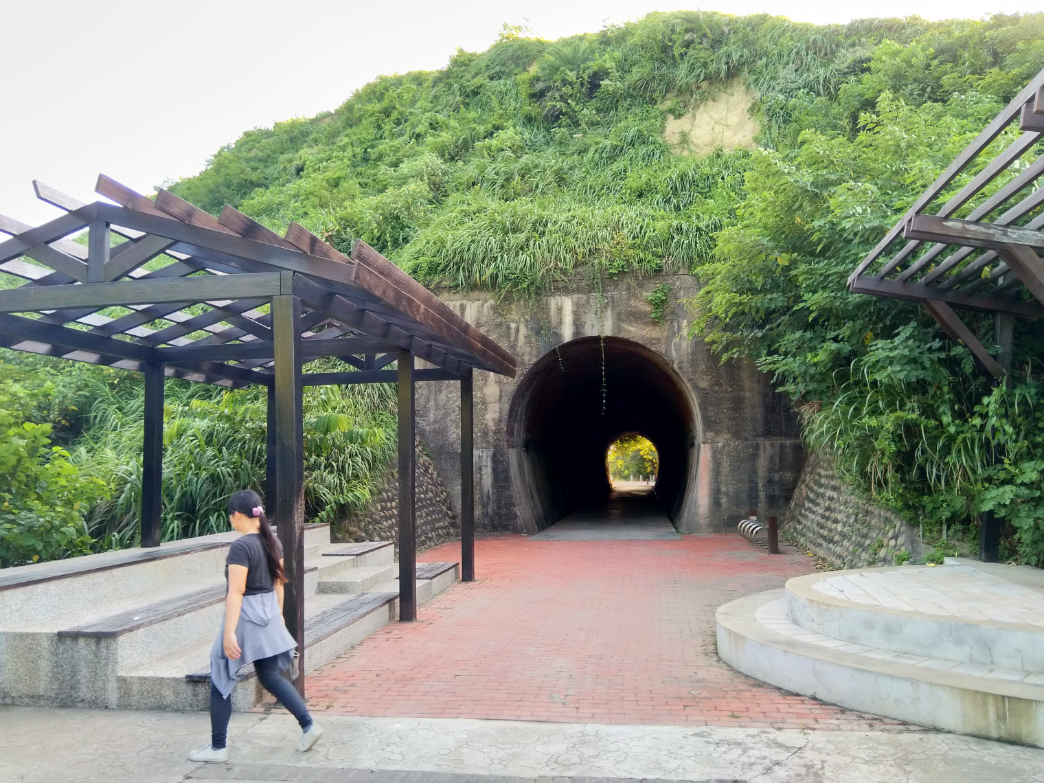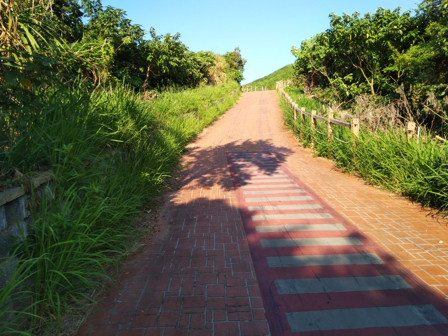 出了2號隧道後不續走1號隧道,改從右側的紅磚路上行
