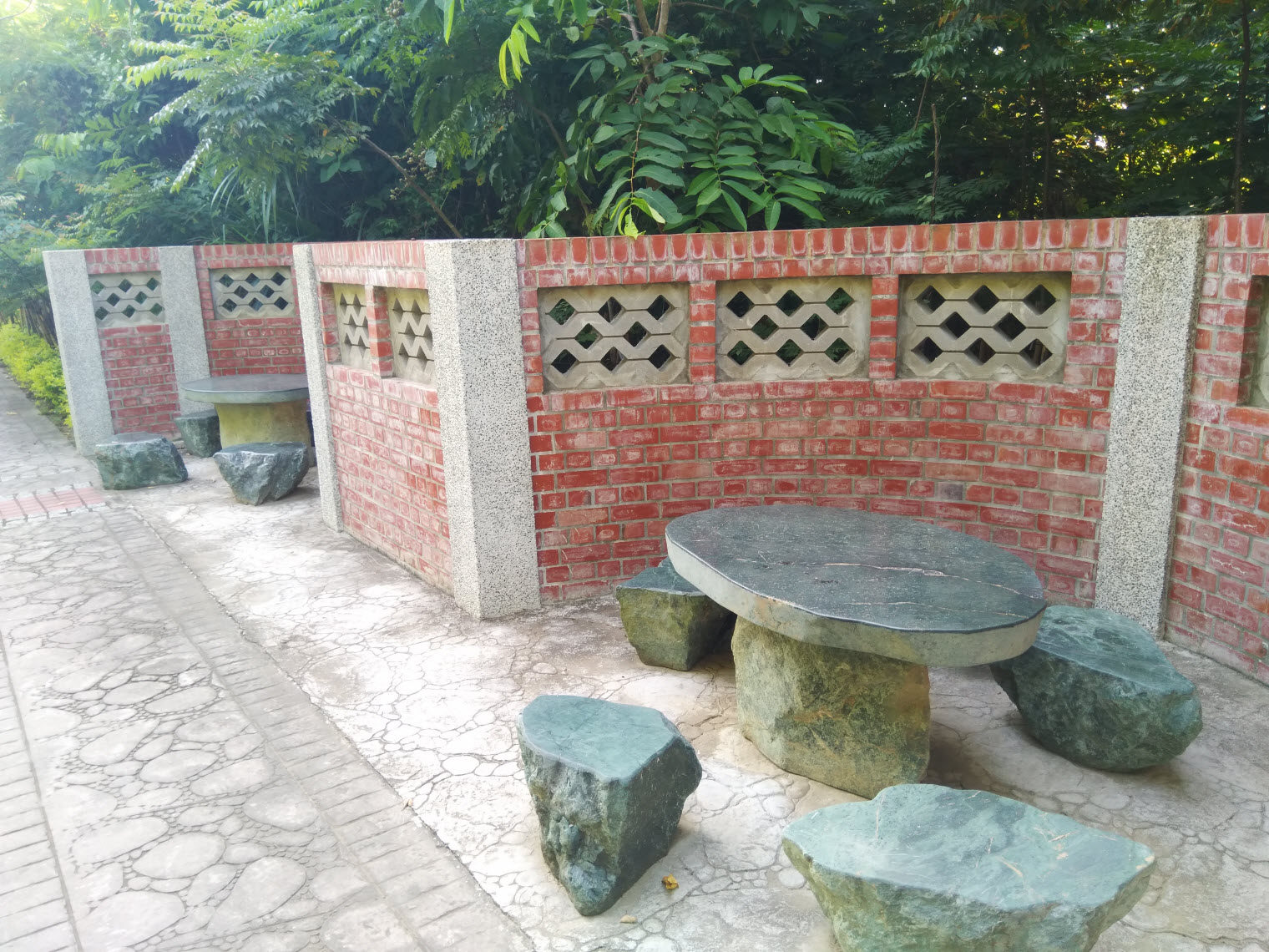 走出2號隧道後,眼前的石椅可供人休憩