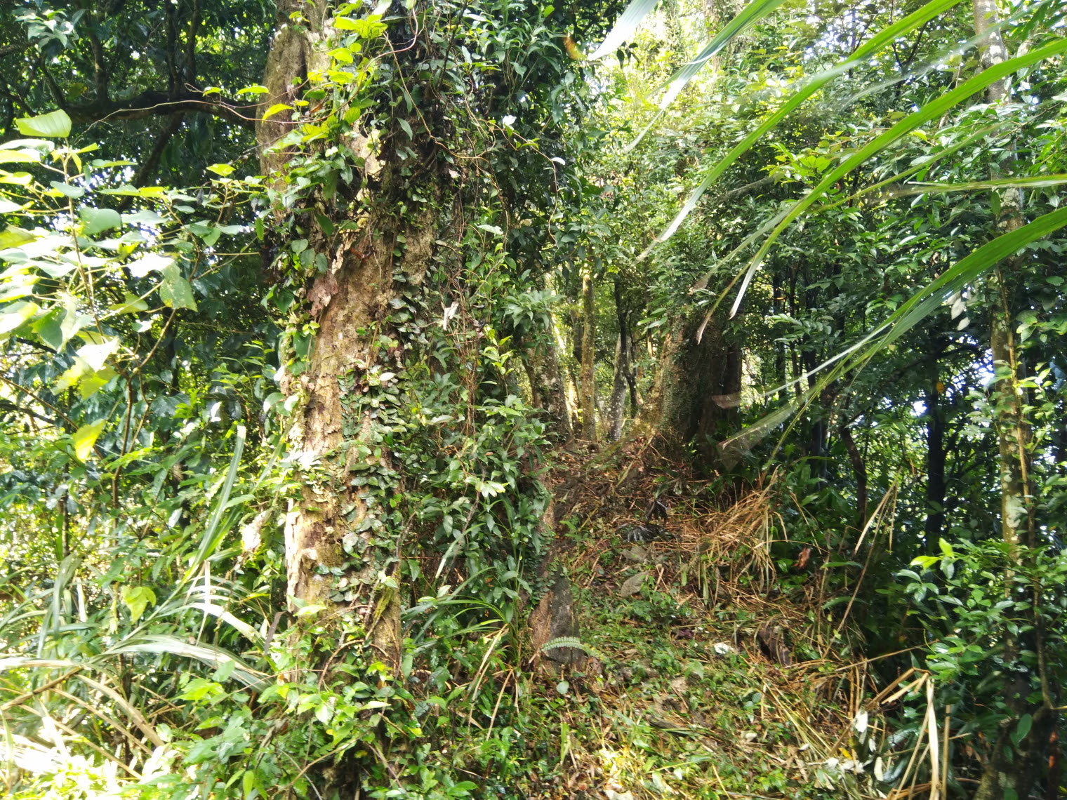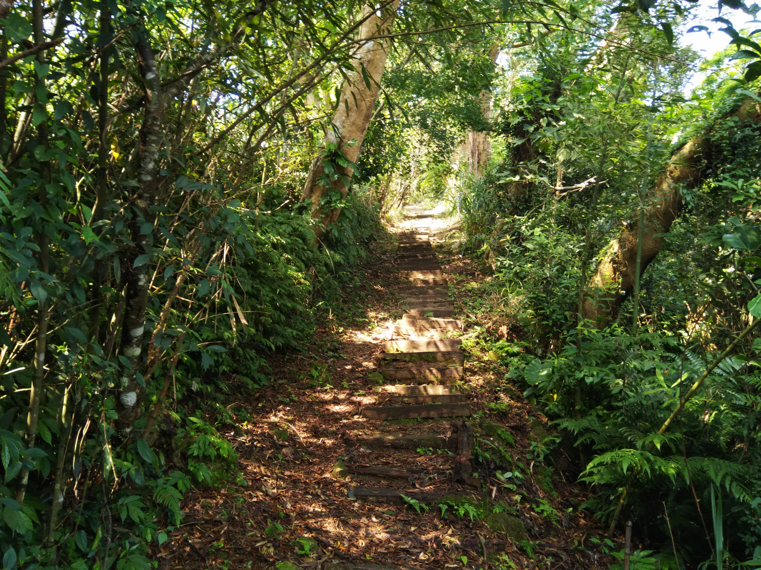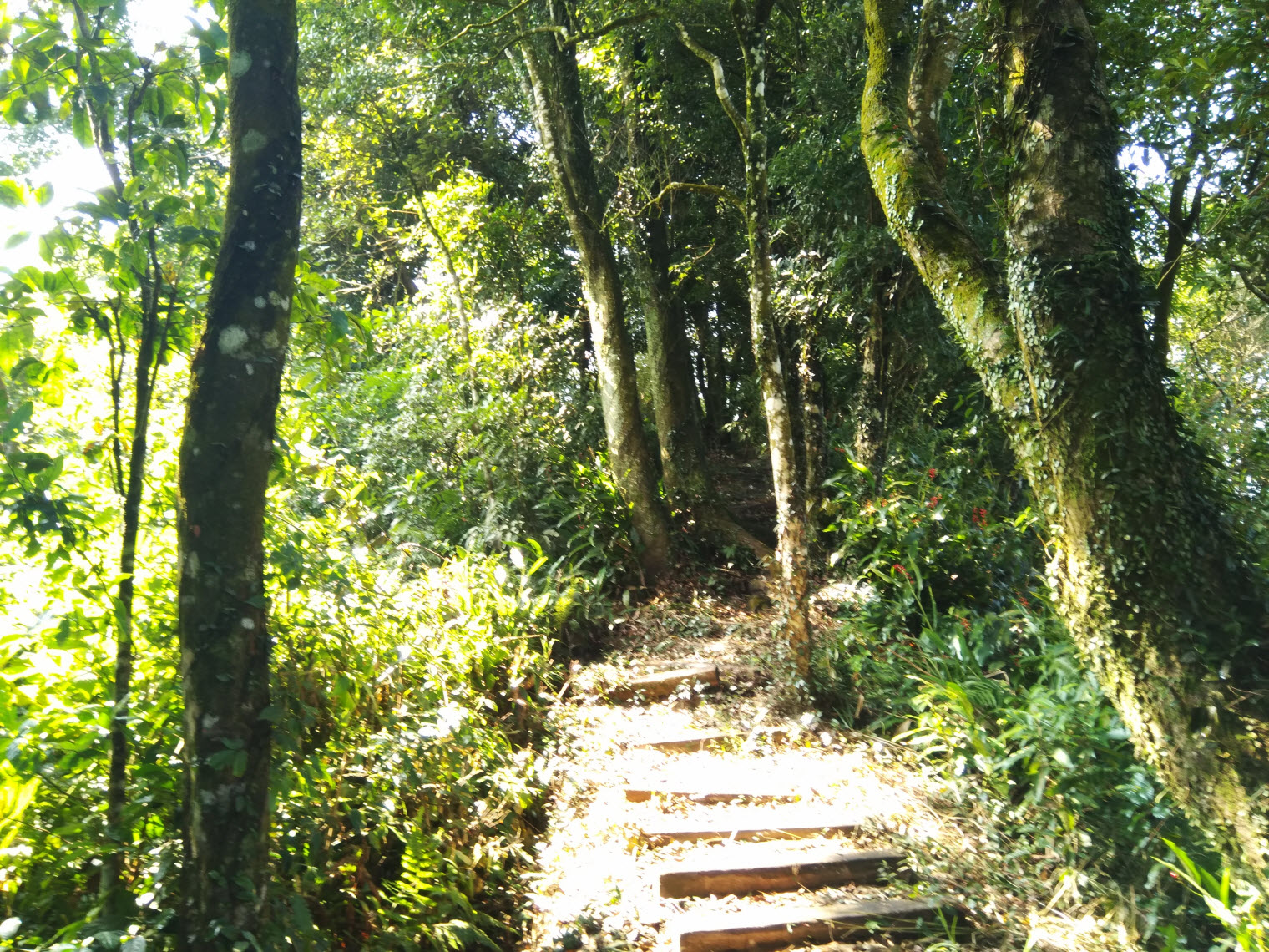 接下來這一段的山徑都有個特點,路上的草、竹葉等你能夠看到的植物,感覺身上都裹了一層水,雖然目前只是微弱東北季風吹拂的秋季,但加上近期至少一個月內無雨,應該蠻乾燥的才對! 說是早上的露水也感到有些不可思議,難怪有山友提及這裡須留意螞蝗的蹤影,不過走一趟下來似乎都沒在手上瞧見,也許需要更濕又悶熱的夏季吧~