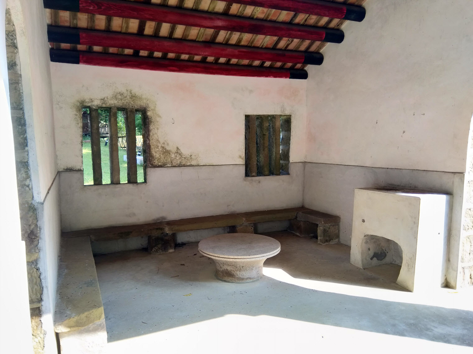 茶亭內部有厚實的牆壁,也有遮風避雨的屋頂,另外這窗櫺竟然是石頭製成更是特別