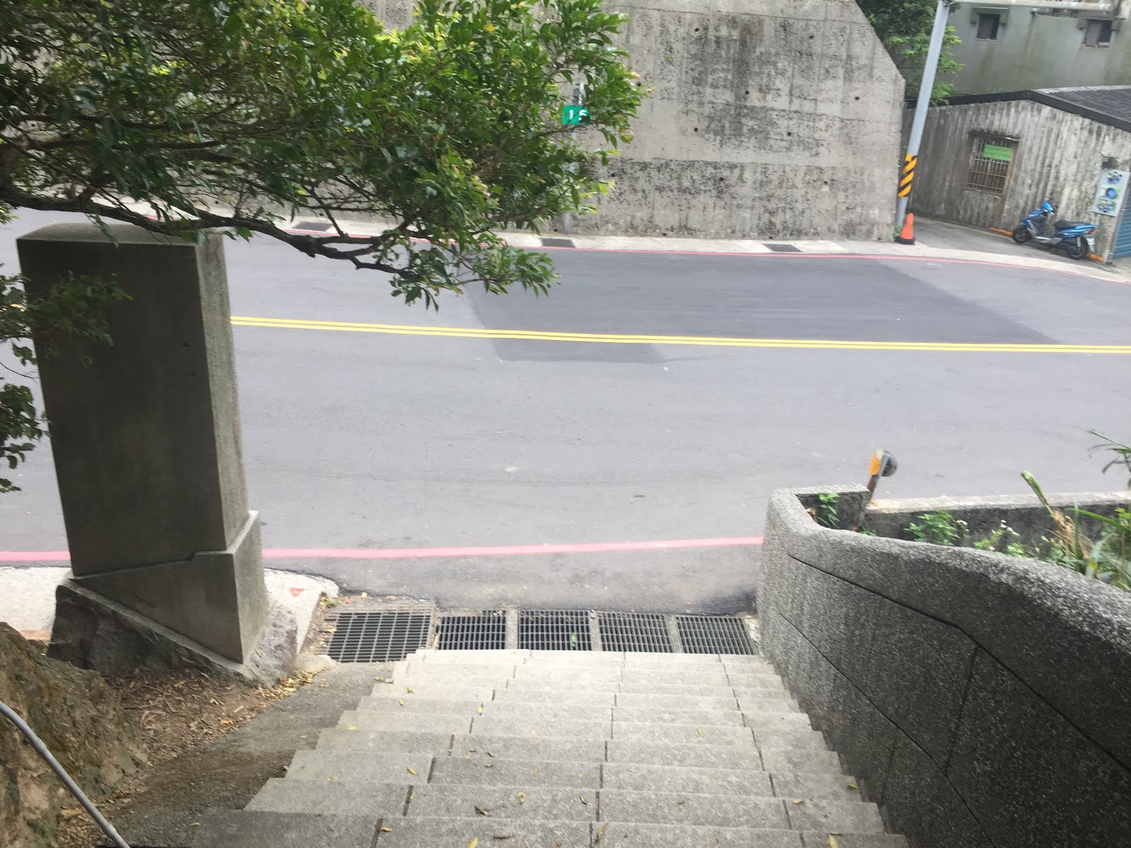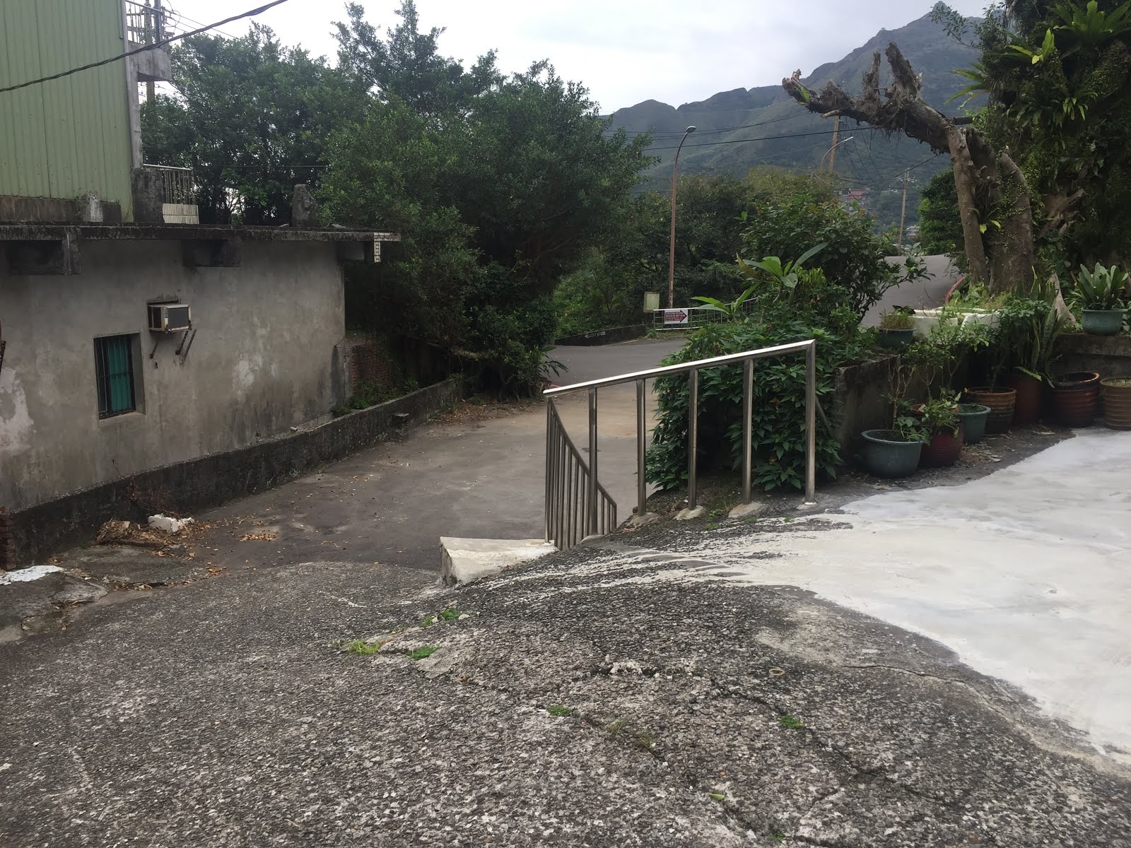 ↓階梯一路陡下,望進九份美景;途經涼亭(11:07),往右叉山腰土徑,比較不傷膝蓋。