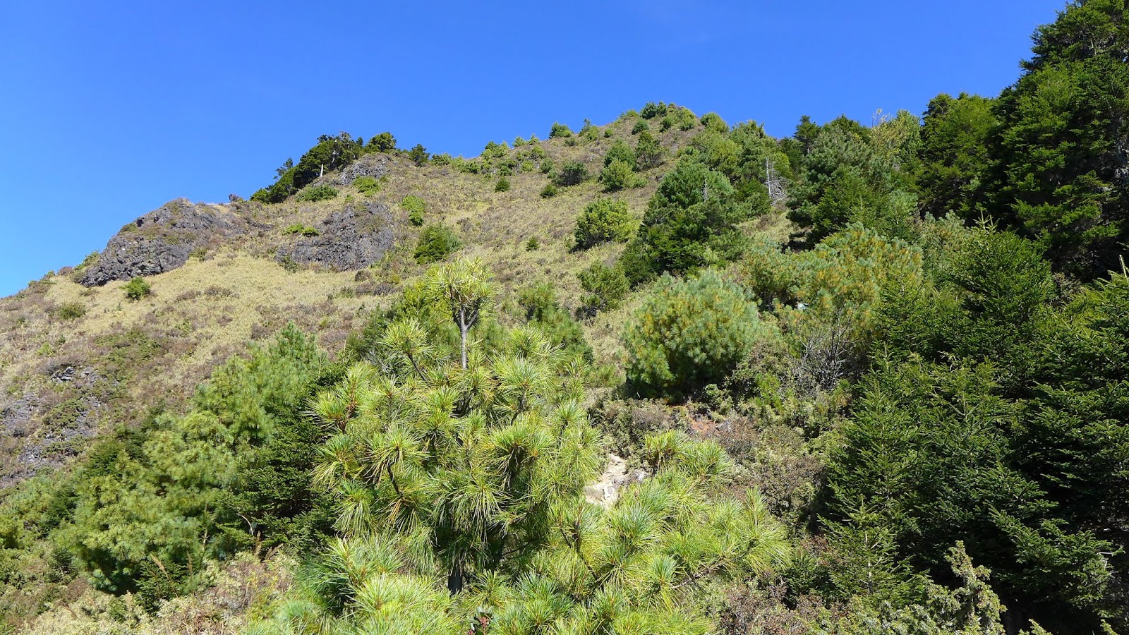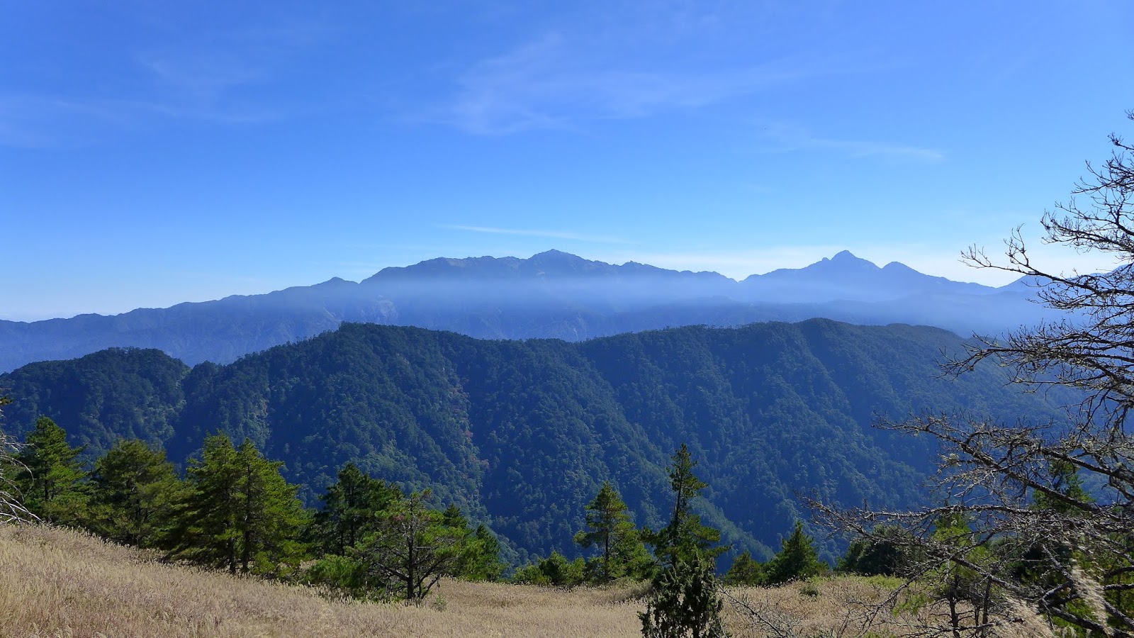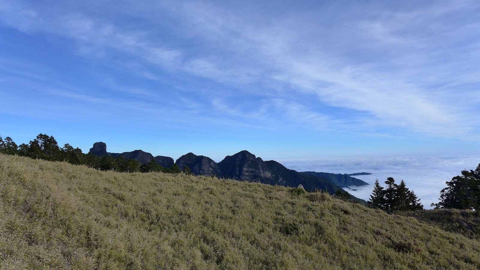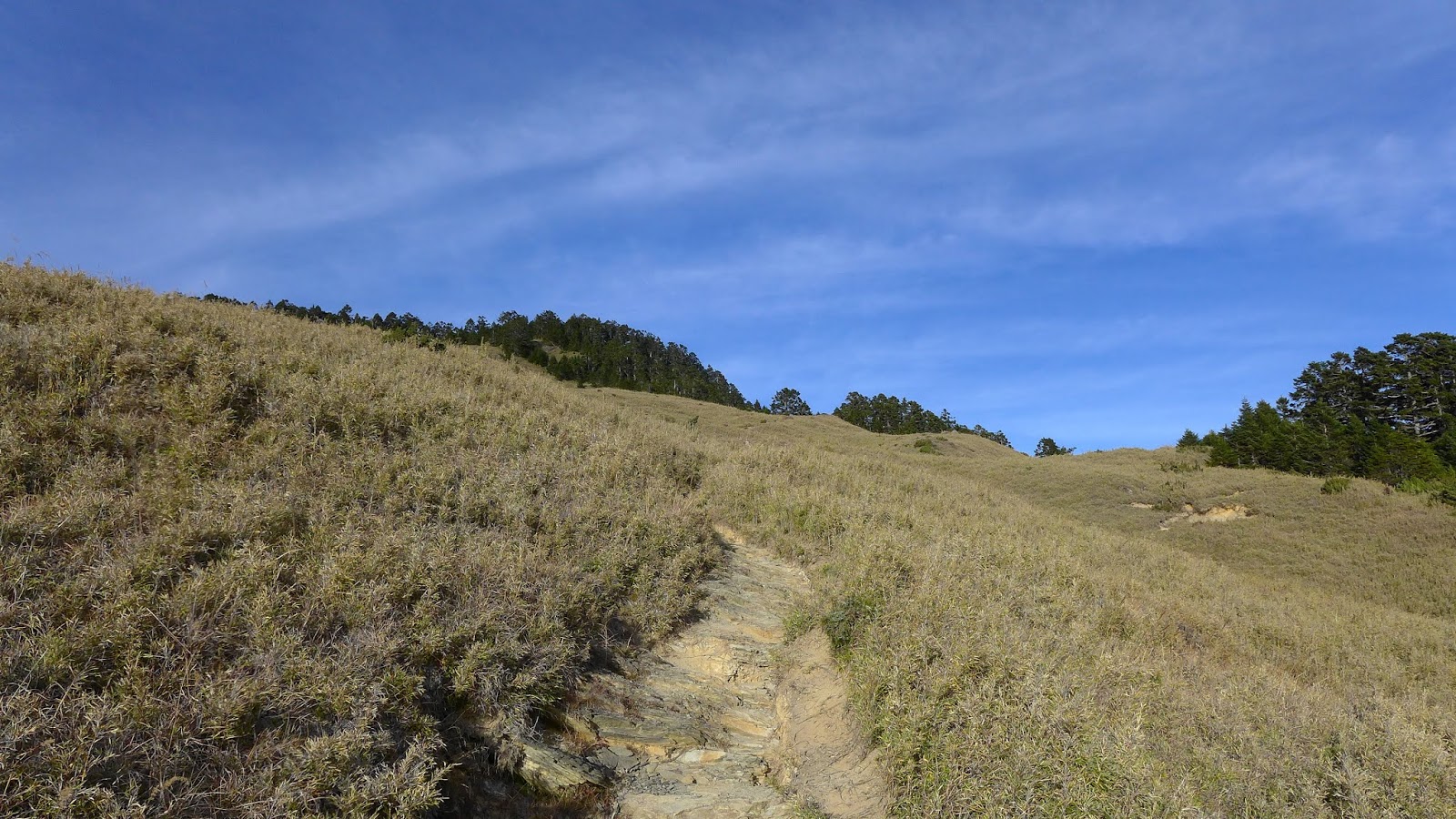 通過詩崙山不久,會離開樹林,眼前是箭竹草坡,從這到喀拉業山起伏沒有剛開始那麼大,算相當好走,沿途景色也不錯。