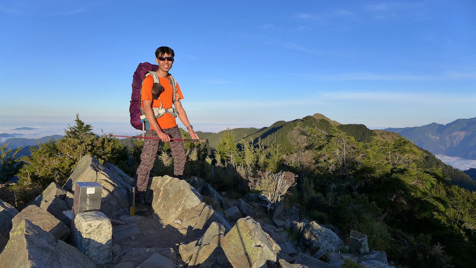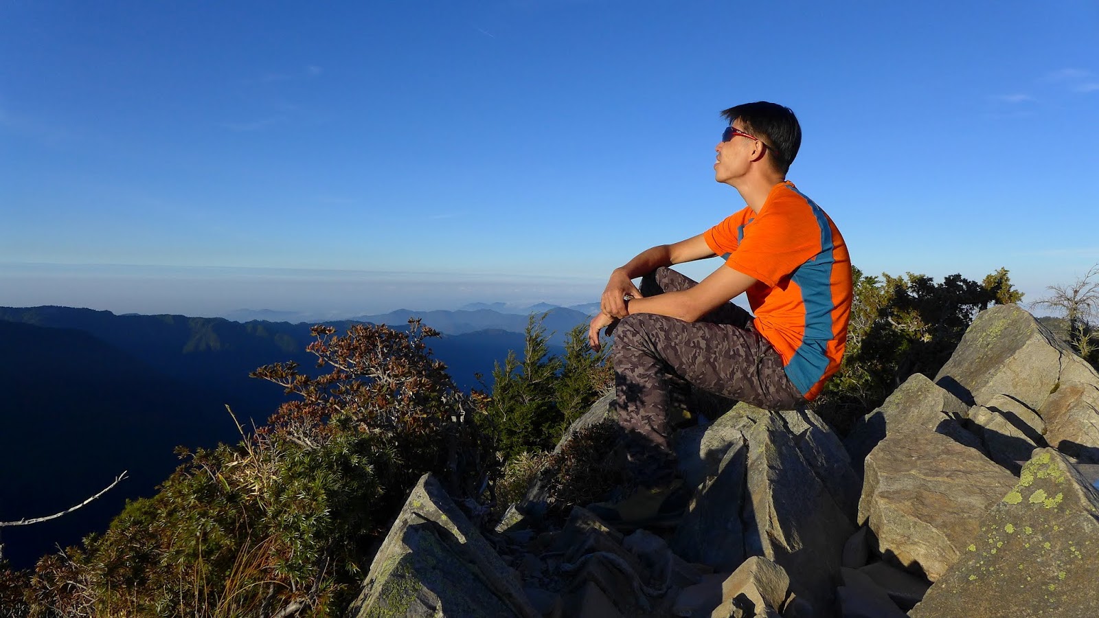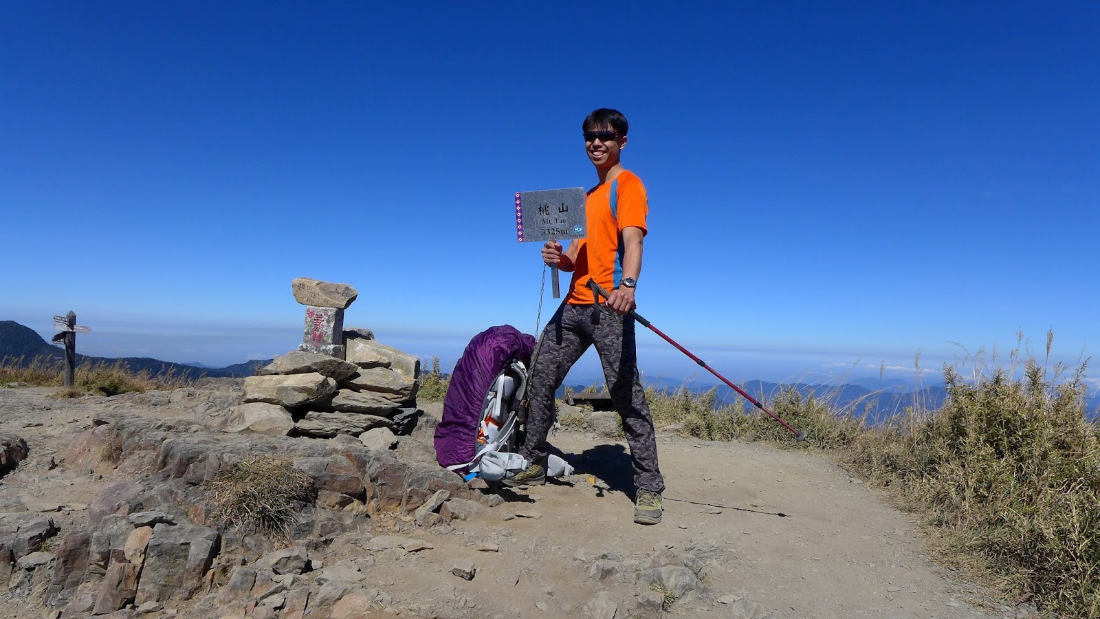 看看時間,抵達新達山屋原本有摸小黑的準備,不過看樣子應該是用不到手電筒了,只是從一早出發開始休息次數不多,爬回桃山腿還真的有點軟了,在山頂曬太陽休個15分鐘再出發。
