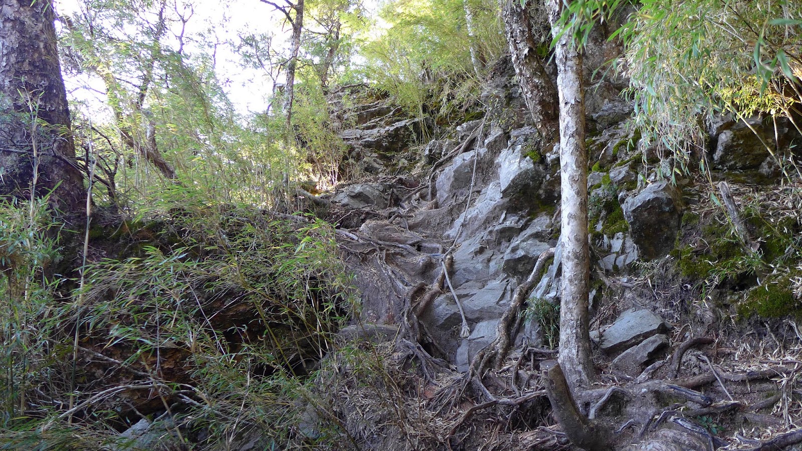 接下來一路不停往品田山前進,先抵達品田前峰後,過一處小V斷,最後一路爬上山頂。
