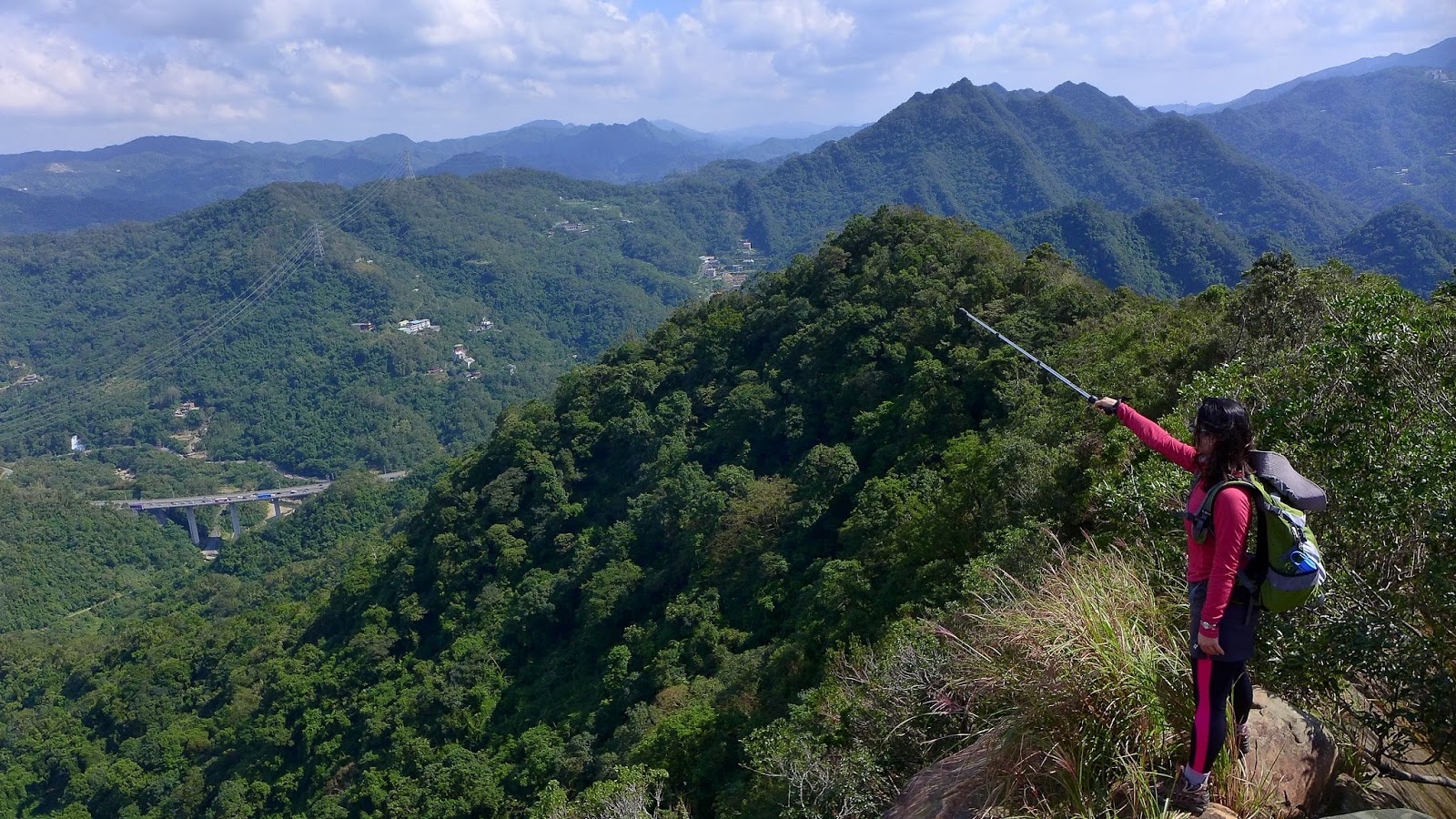 二格山分成2峰,左邊不取直接往右邊的景觀臺,高點可覽台北市區以及一路走來的筆架連峰,另一側則是翡翠水庫集水區。