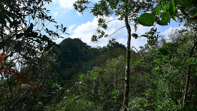 樹林穿越一小段後,再次有展望的地方可看到剛剛所在的西帽子岩,然後再次進入樹林後,再下一處展望已經拉開很長一段距離,除了西帽子岩外,中間的山頭都能看到。