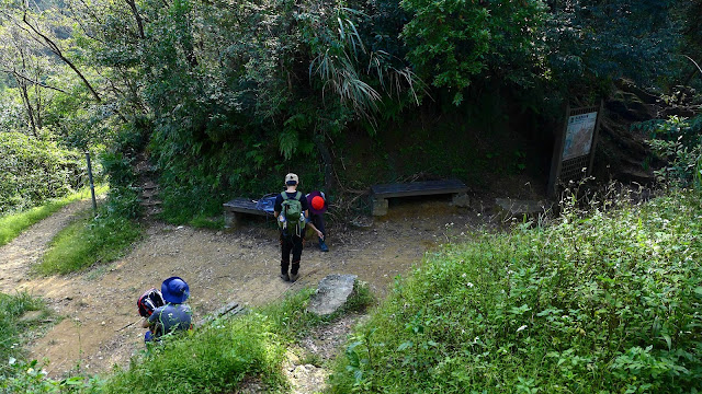 這邊過去稱為綠豆湯鞍部,不過已經是很久以前的事了,這裡已經沒有人來賣綠豆湯囉,這邊可通往北宜公路,是爬二格山最快的路徑,另一邊通往阿柔洋、猴山岳,我們直行往二格山。