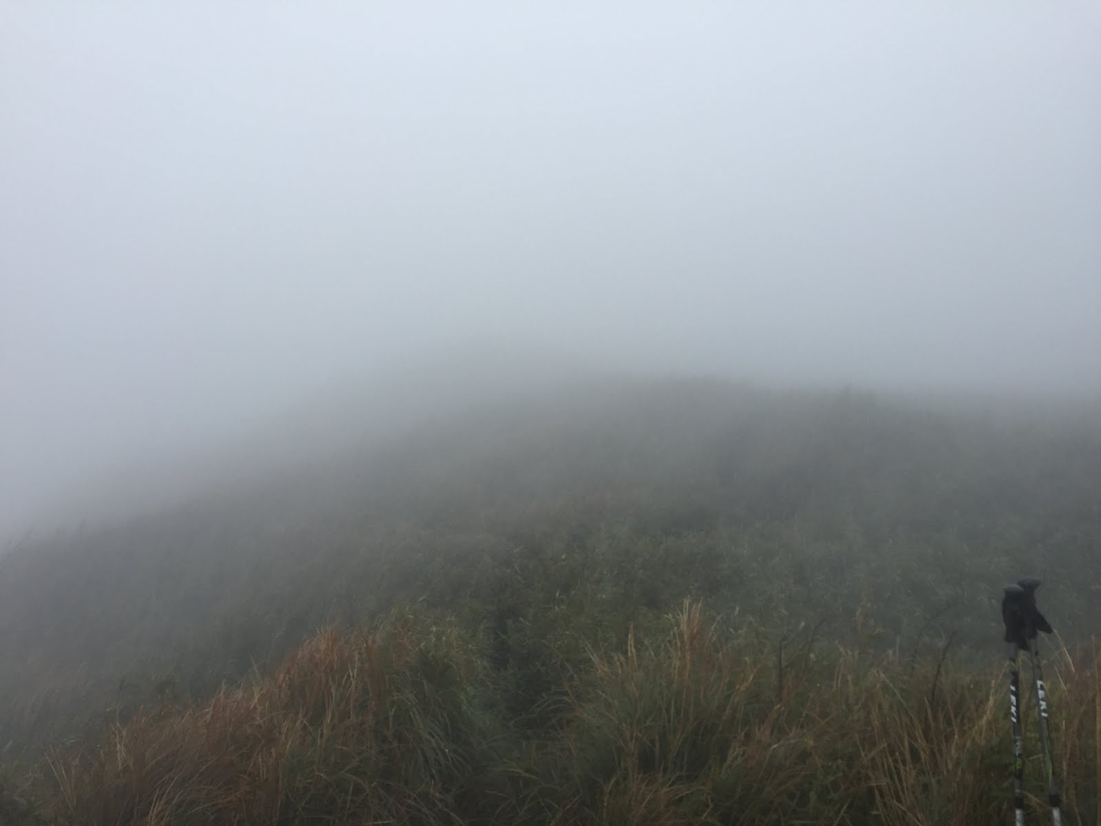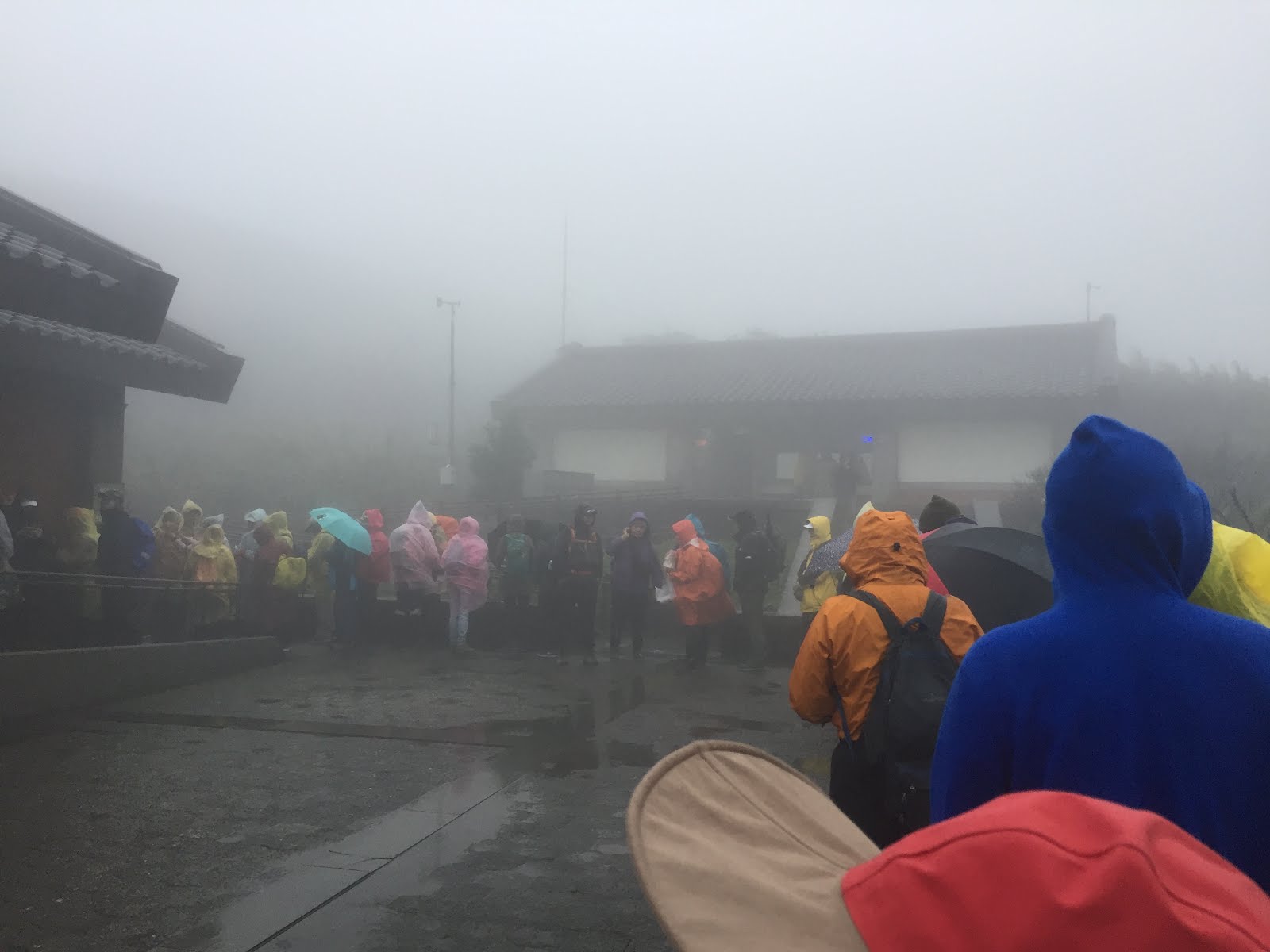 到小油坑停車場時間大約7:20分,霧雨交加,雖然氣溫稍低點,但心想早上8:00開始發放,還有充裕時間拿紀念品兌換卷,先簡裝從停車處到洗手間解放一番!