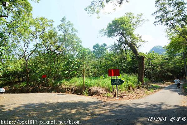 或在園區大門前右轉,跟著指標走,就可到達九九峰露營區旁的道路停車,然後沿指標到達步道南端入口。