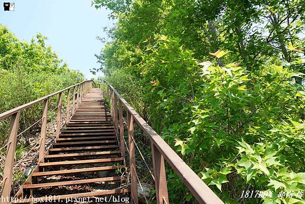 木棧道一路往上,足夠讓人汗流浹背,