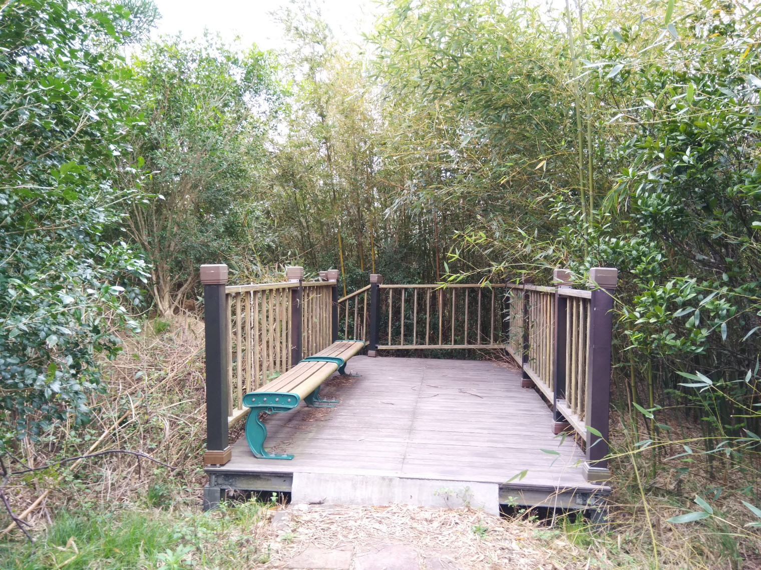 還記得剛剛一開始走步道時,在視野點上看到三灣大橋的景象,現在我們就是站在這回望剛剛的視野點